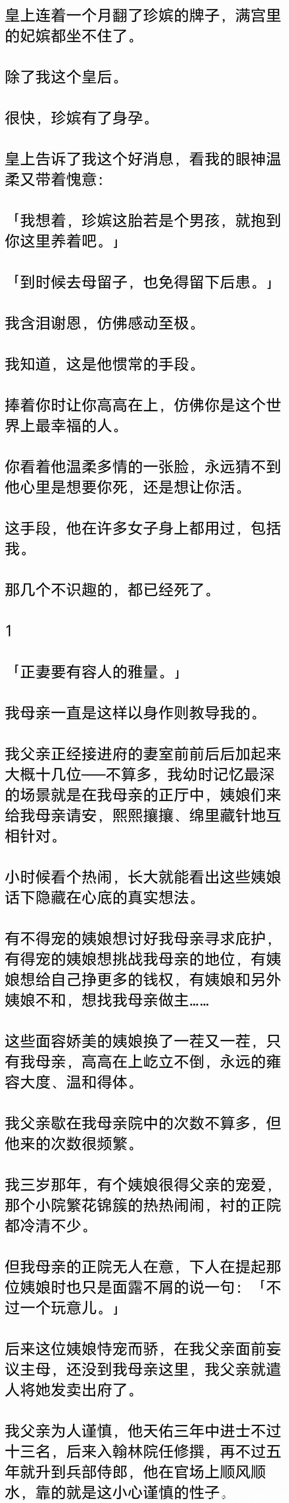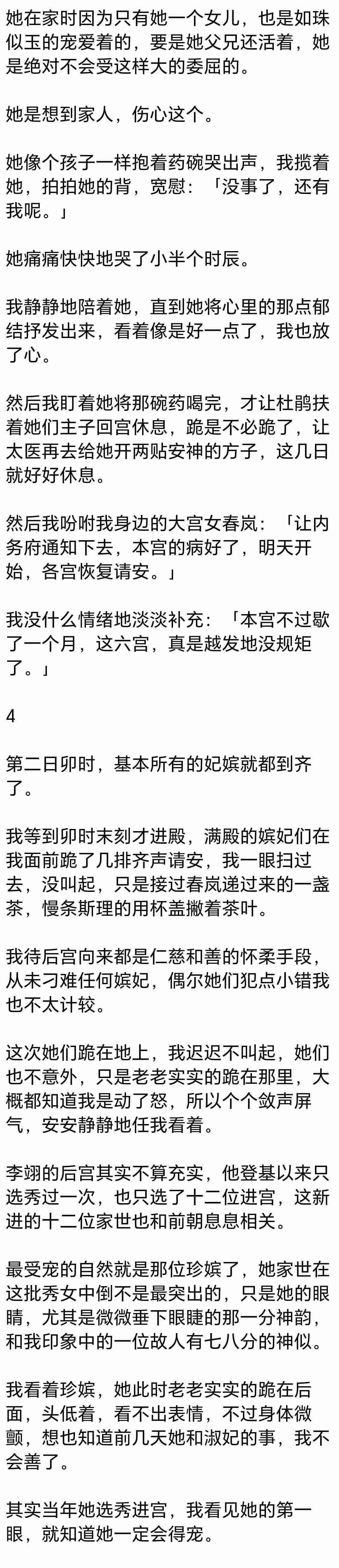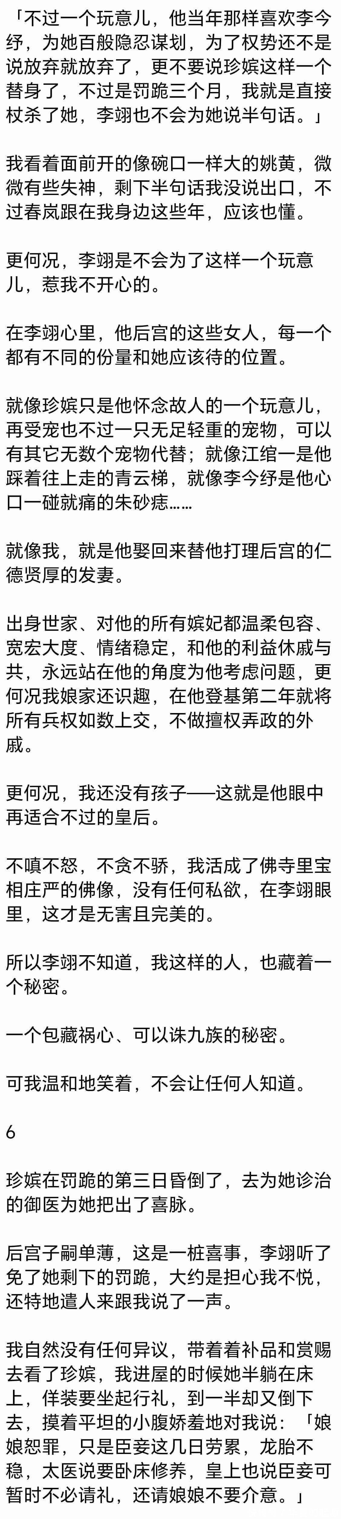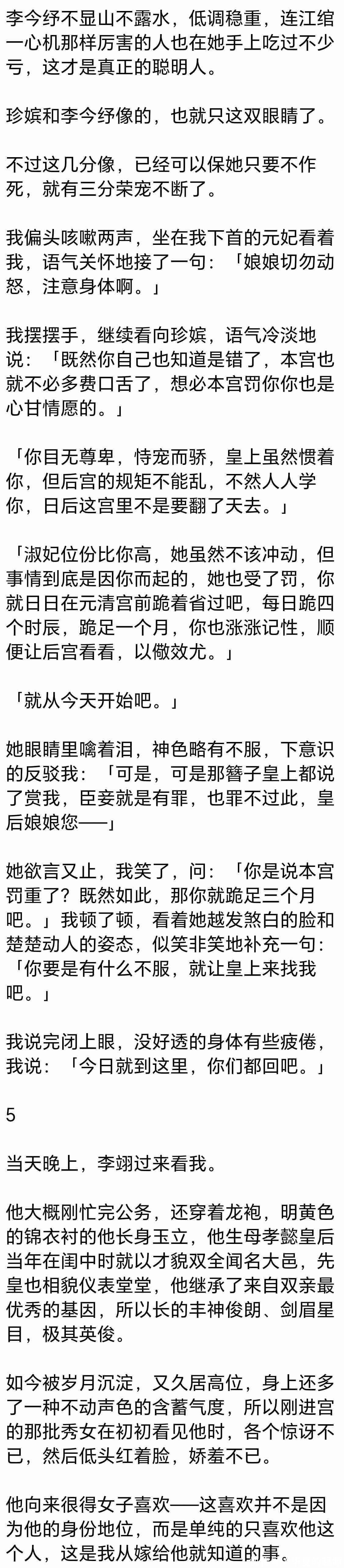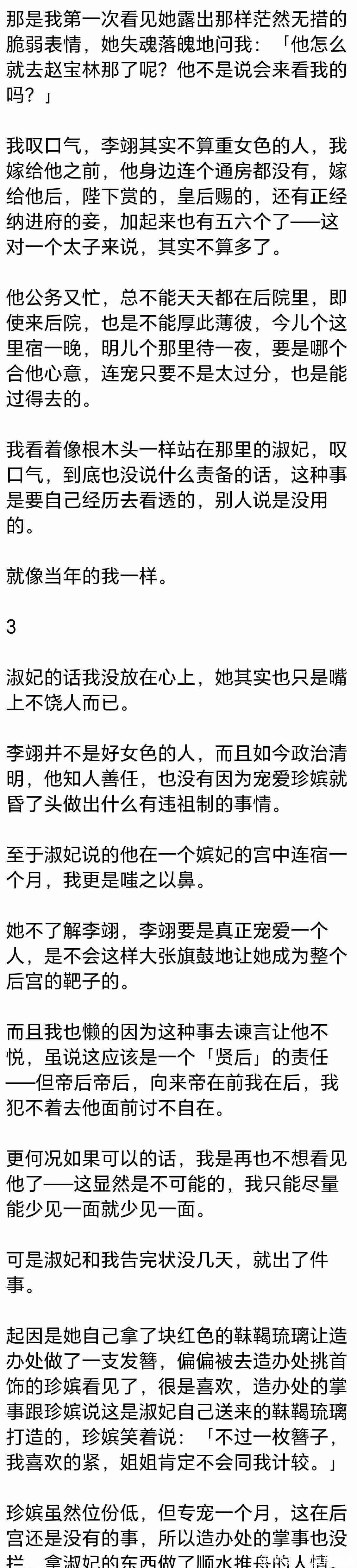 光绪帝与珍妃的故事就是一面镜子。珍妃因光绪的专宠成为众矢之的,最终被慈禧投井赐死。 类似地,小说中的珍嫔尽管怀有龙种,却因嚣张跋扈而树敌众多,最终在与良嫔的冲突中流产失势。 历史反复证明,后宫的专宠就像泡沫,看似绚烂,却一触即破。