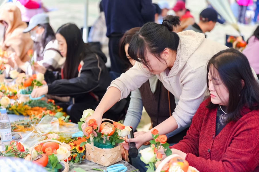 空间网络的背后,是持续培育在地力量的努力。自2021年至今,街道已培育627位居民社区规划师,并于今年推出“社区规划师 + 社区园艺师”双轨协作机制,成功认证首批社区园艺师。通过系统课程提升居民园艺理论与实践能力,并打造“东明人自己的花园秀”专属展示平台。现场12组社区园艺师团队的作品风格多样、意蕴深远,引发居民情感共鸣。花展装置在活动结束后将漂流至各社区,成为持续美化的固定景观,实现资源在时间与空间上的可持续流动,生动诠释“人民城市人民建”的理念。