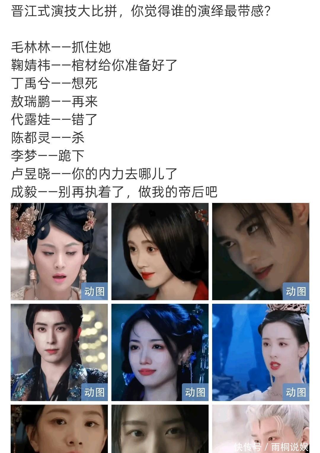 你觉得内娱哪位演员的表演也可以被提名“晋江式演技”呢?一起在评论区畅所欲言吧。