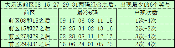 前区两码08和15开出之后,表现最冷的6个号码为:09、17、06、08、11、15;